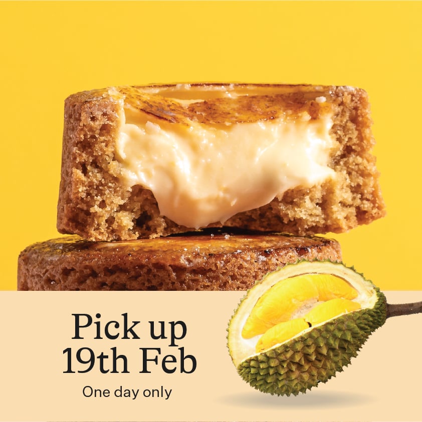 Our most in-demand cookie of all time, the Crème Brûlée Cookie Cup, now with creamy DURIAN filling.